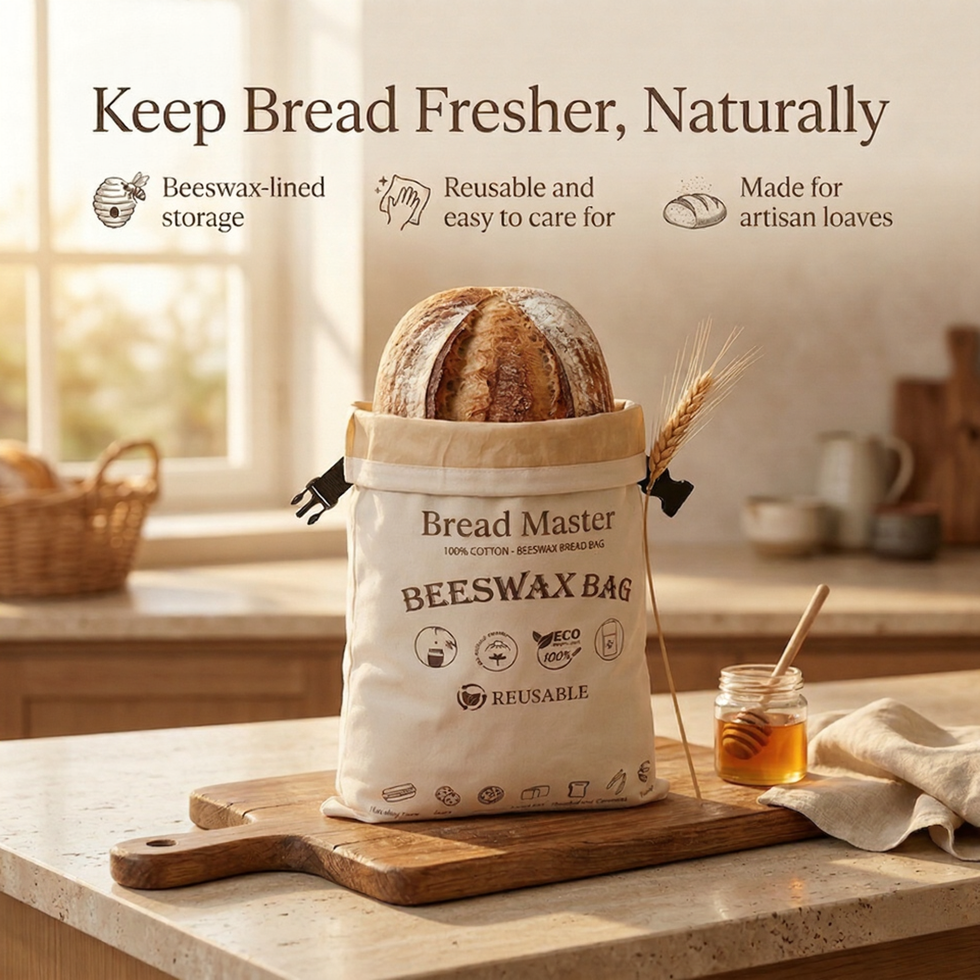 Most "beeswax" bags on Amazon use polyester blends with TPU plastic – no real beeswax. Bread Master is made from 100% pure cotton with a coating of real, natural beeswax. You can feel the difference. No plastic, no compromises.